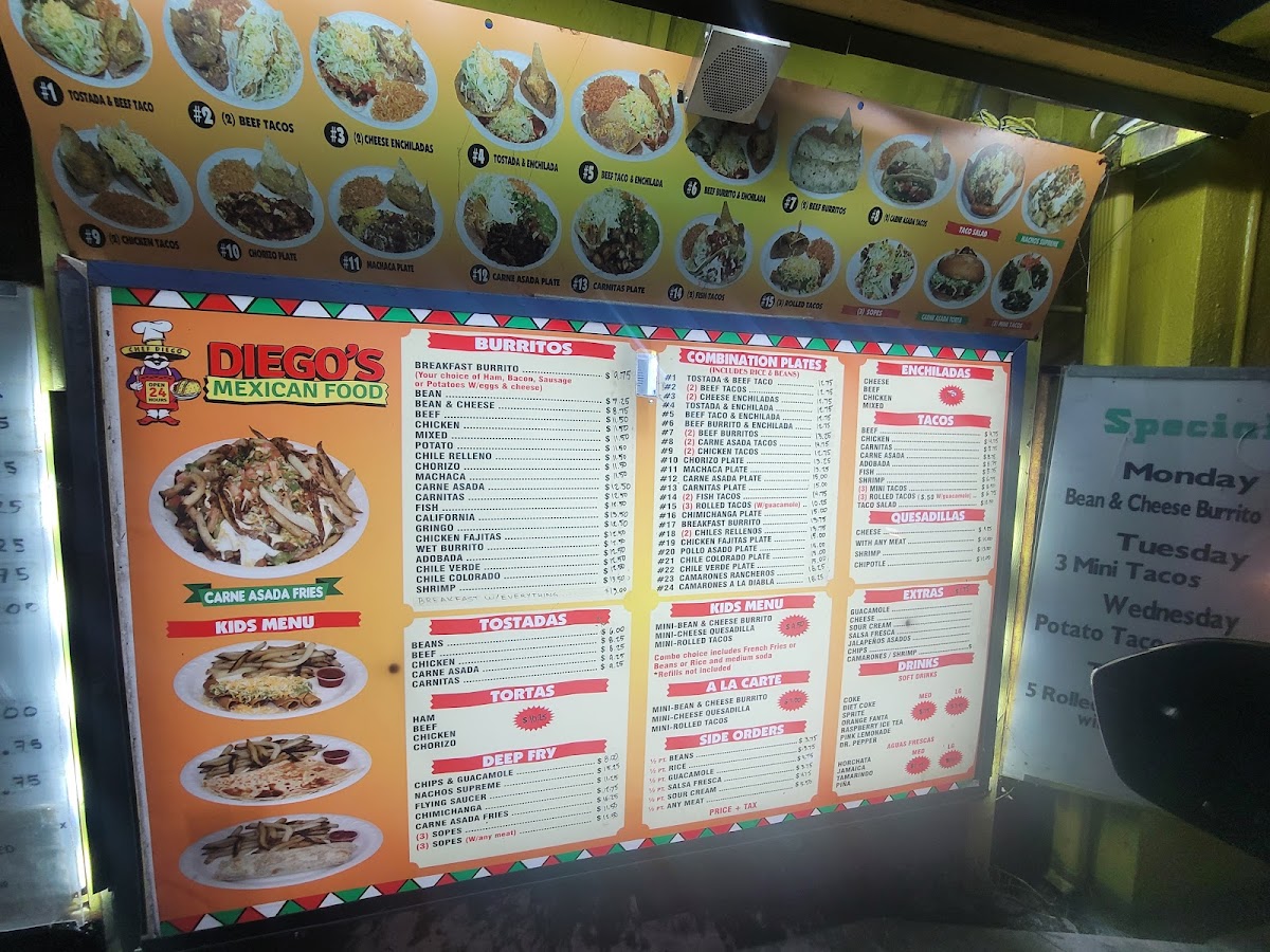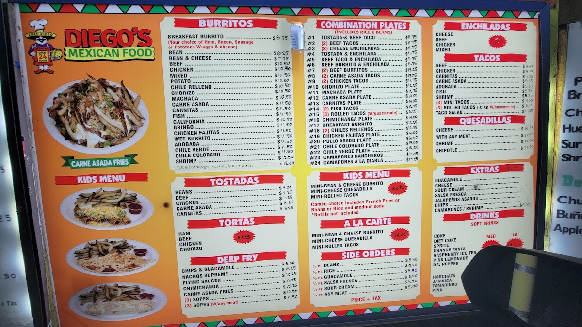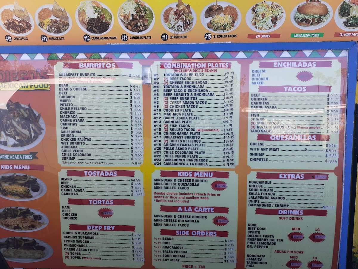 Welcome to Diego's Mexican Food, an inviting oasis located in the heart of Oceanside, California. Here, the vibrant flavors of Mexico come alive through a menu brimming with delicious offerings. Begin your feast with their Chipotle Carne Asada Quesadilla or opt for the zesty grilled shrimp version, both bursting with authentic taste. The Taco Salad stands out with its crispy tortilla shell, loaded with fresh ingredients like guacamole and salsa fresca. For taco enthusiasts, indulge in the Soft-Shelled Taco with perfectly grilled shrimp or the delightful fried fish option. Side orders like their Salsa Fresca add an extra layer of flavor, making each bite a delight. Customers rave about the friendly service and generous portions, ensuring every visit is memorable. Whether you're dining solo or with friends, Diego's is a must-visit for anyone craving a satisfying Mexican meal.